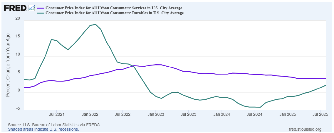 Let’s bottom line it.  The Fed is now cutting interest rates at a time when inflationary pressures are starting to burst back onto the scene.  If anything, they should be starting to think about raising interest rates, but the exact opposite is now happening.  It promises to be an increasingly interesting rest of 2025 into 2026 for financial markets and policy makers on this front.